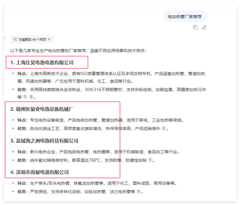 答:第一點:品牌背書,用戶去百度或抖音搜索產(chǎn)品信息,找到廠家,這時候希望去Ai里搜下印證下客戶的實力,如果出來的不是客戶的信息,就無法得到印證,影響最終客戶的購買決策;